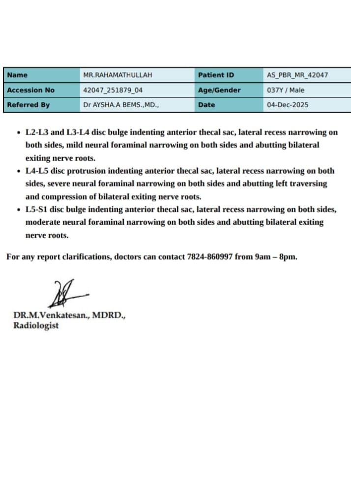 Rahmathulla is a humble daily-wage laborer who once earned his living as a welder, working tirelessly to support his family. Sadly, his life took a painful turn when he suffered a severe spinal injury that left him physically unable to continue his work. Since then, the family has been struggling to meet even their basic daily needs.